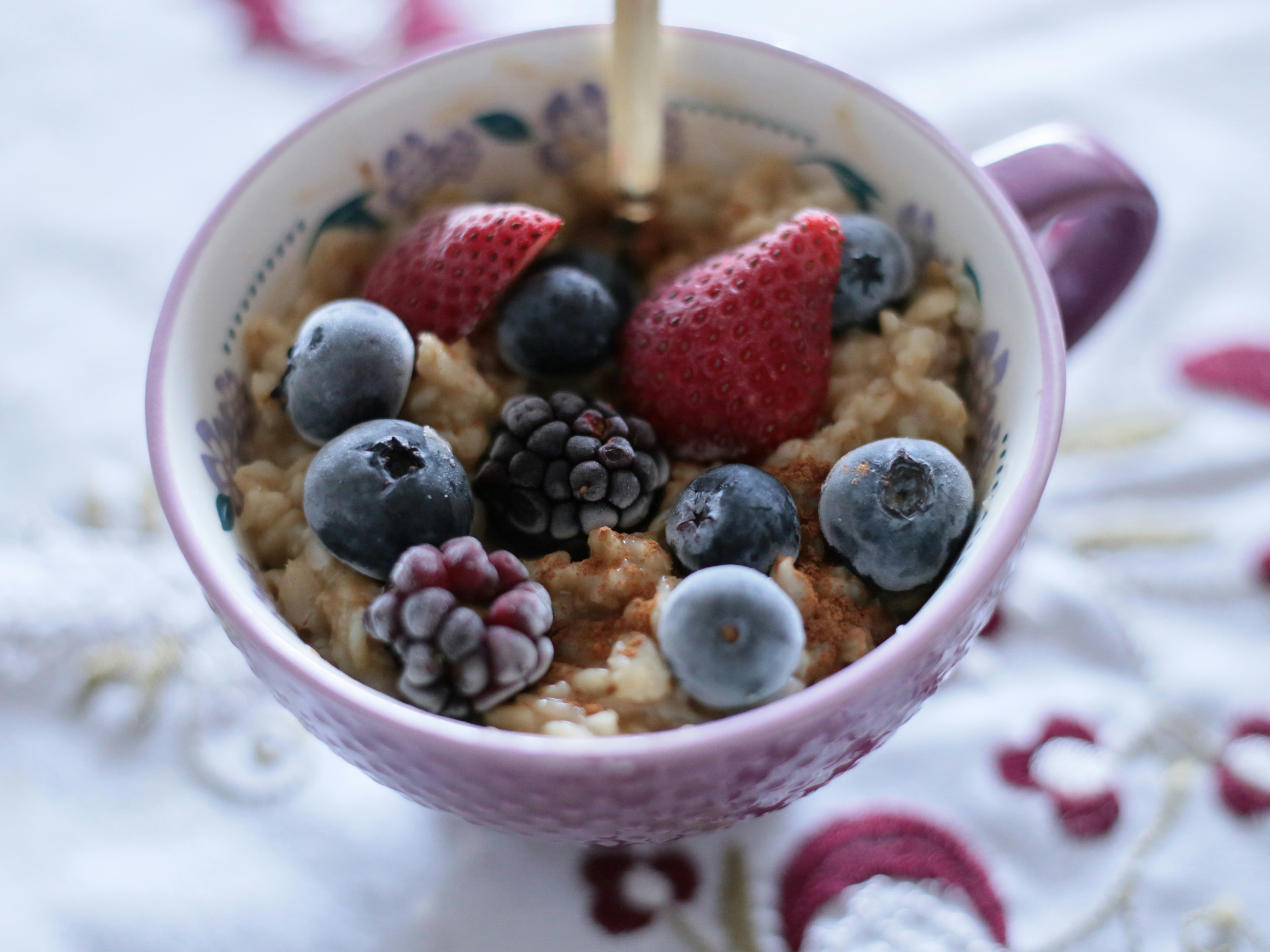 - Procedimento: mescola gli ingredienti fino a ottenere un composto omogeneo e cuoci in padella antiaderente a fuoco medio-basso, 2-3 minuti per lato. Servi con una manciata di frutti di bosco.